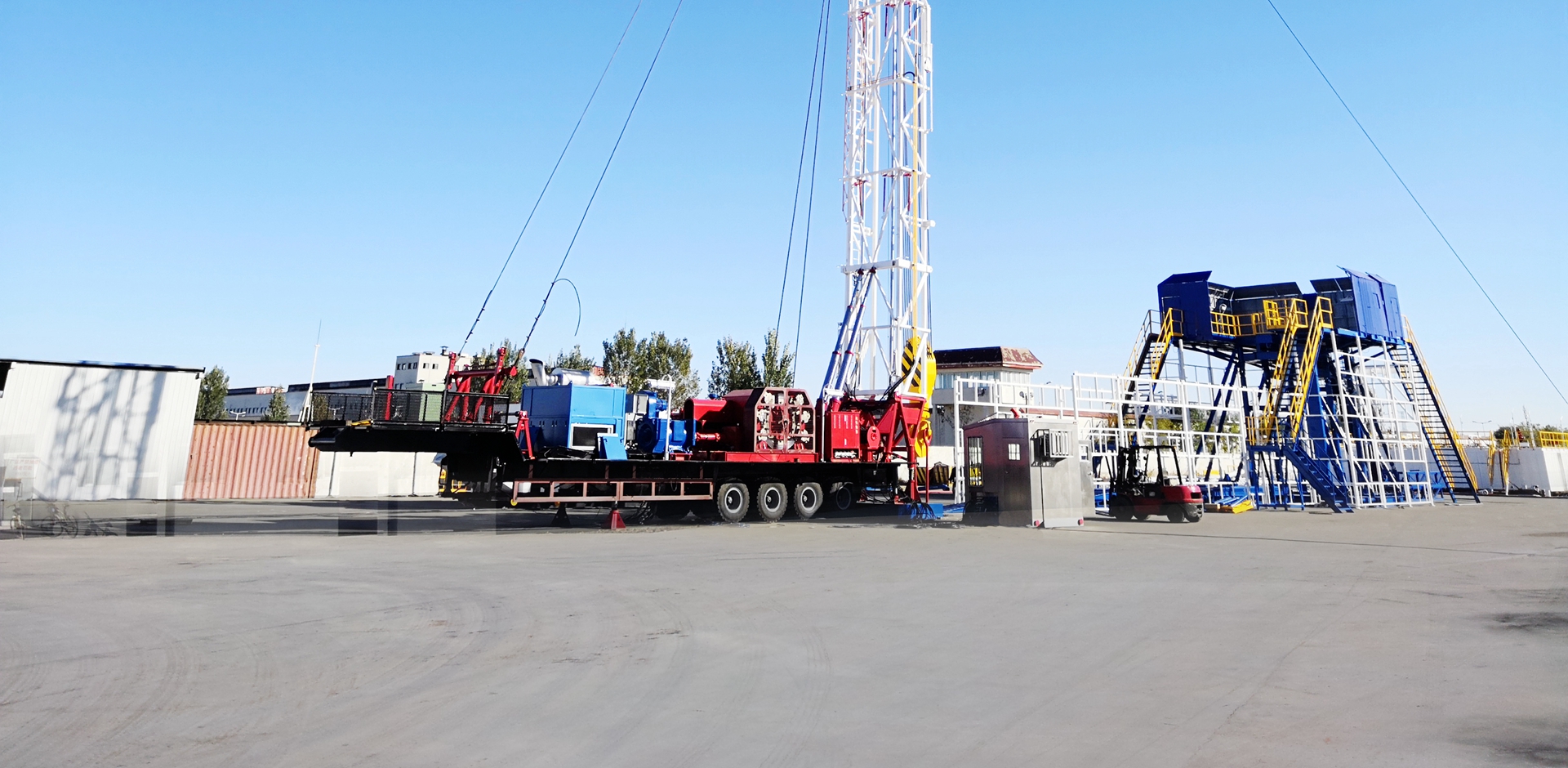 拖裝鉆機(jī)的動(dòng)力、絞車、井架、游車系統(tǒng)及傳動(dòng)機(jī)構(gòu)全部裝載于半掛底盤上,移運(yùn)時(shí)用牽引車拖掛移運(yùn)至現(xiàn)場,該類產(chǎn)品對(duì)于提高鉆井作業(yè)搬遷效率具有很大的優(yōu)勢,適應(yīng)于中淺井鉆井作業(yè)。